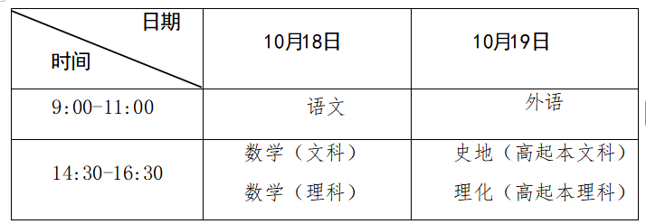 1.高起本、高起专考试时间表