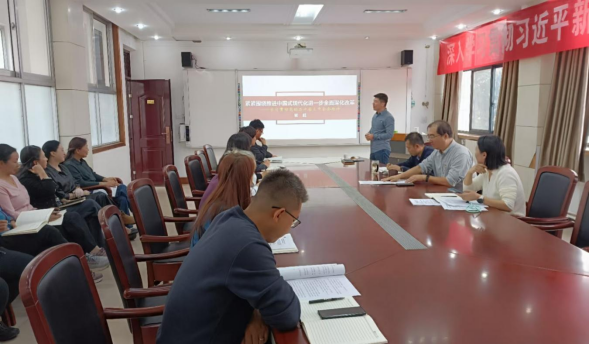 会议邀请学校马克思主义学院宣讲团成员郭超老师以《紧紧围绕推进中国式现代化进一步全面深化改革—学习贯彻党的二十届三中全会精神》为题做辅导作报告。大家集中学习了《习近平:在会见出席中国国际友好大会暨中国人民对外友好协会成立70周年纪念活动外方嘉宾时的讲话》、《中国共产党第二十届中央委员会第三次全体会议公报》、《中共中央关于进一步全面深化改革、推进中国式现代化的决定》、《习近平:在党的二十届三中全会第二次全体会议上的讲话》、《习近平:关于<中共中央关于进一步全面深化改革、推进中国式现代化的决定>的说明》等和党的二十届三中全会相关的学习文件。中心组成员结合学习主题和工作实际进行了研讨交流。